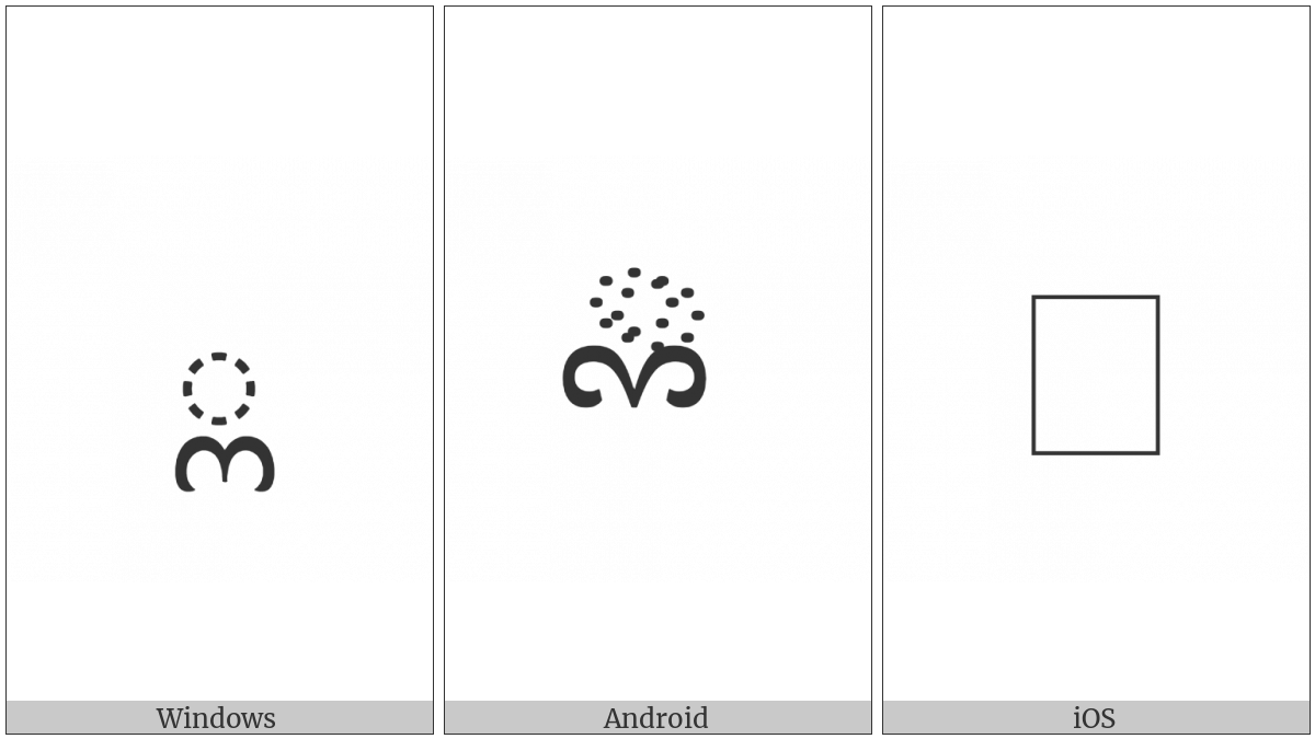 The image below shows how the “Tibetan Subjoined Sign Mchu Can” symbol might look like on different operating systems. If the font in which this web site is displayed does not contain the symbol and there is no fallback font able to render it, you can use the image below to get an idea of what it should look like.