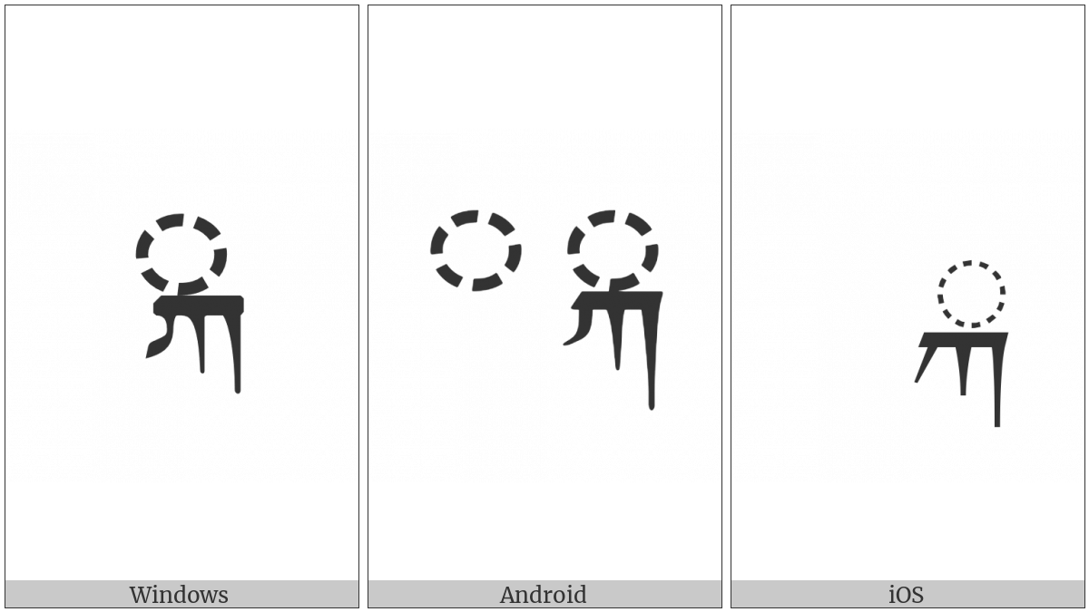The image below shows how the “Tibetan Subjoined Letter Ka” symbol might look like on different operating systems. If the font in which this web site is displayed does not contain the symbol and there is no fallback font able to render it, you can use the image below to get an idea of what it should look like.