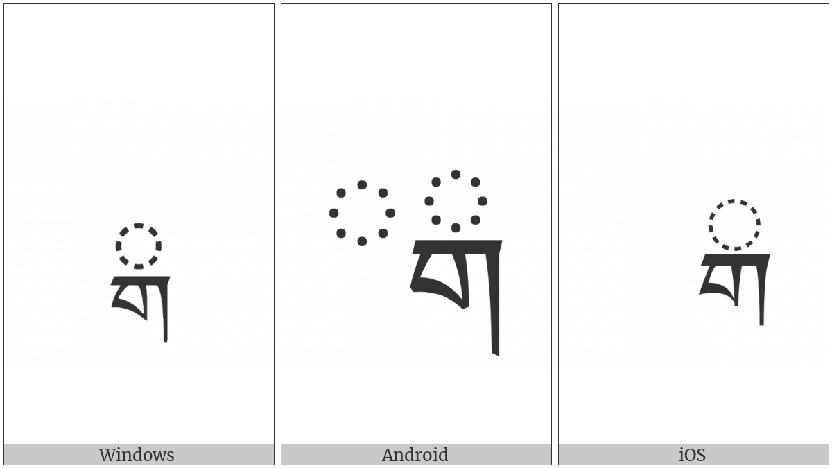 “Tibetan Subjoined Letter Ga” on various operating systems