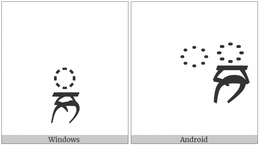 The image below shows how the “Tibetan Subjoined Letter Ddha” symbol might look like on different operating systems. If the font in which this web site is displayed does not contain the symbol and there is no fallback font able to render it, you can use the image below to get an idea of what it should look like.