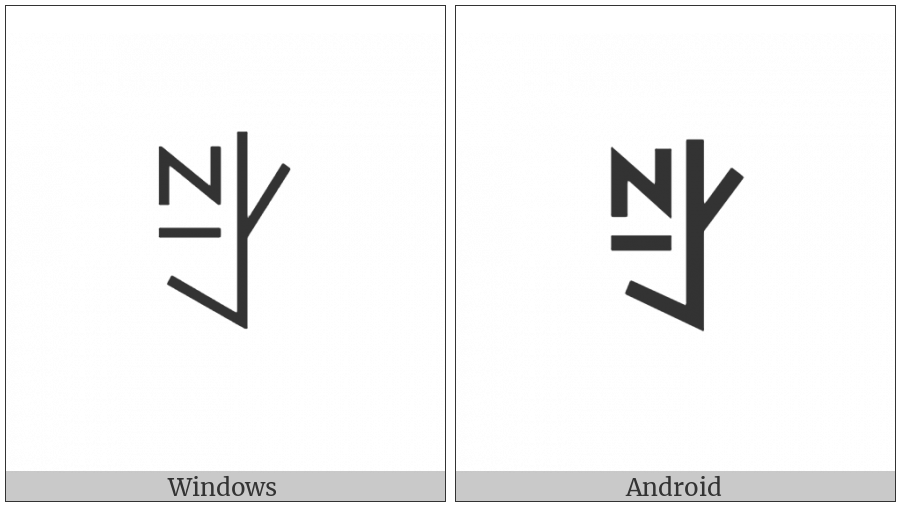 The image below shows how the “Yi Syllable Bbep” symbol might look like on different operating systems. If the font in which this web site is displayed does not contain the symbol and there is no fallback font able to render it, you can use the image below to get an idea of what it should look like.