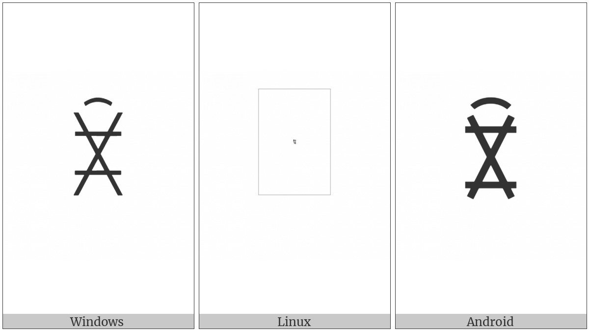 The image below shows how the “Yi Syllable Nbax” symbol might look like on different operating systems. If the font in which this web site is displayed does not contain the symbol and there is no fallback font able to render it, you can use the image below to get an idea of what it should look like.