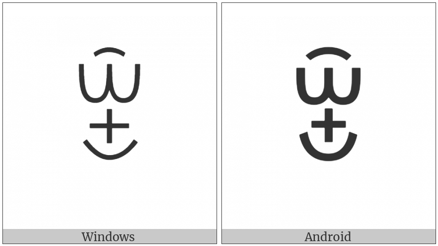 The image below shows how the “Yi Syllable Nbox” symbol might look like on different operating systems. If the font in which this web site is displayed does not contain the symbol and there is no fallback font able to render it, you can use the image below to get an idea of what it should look like.