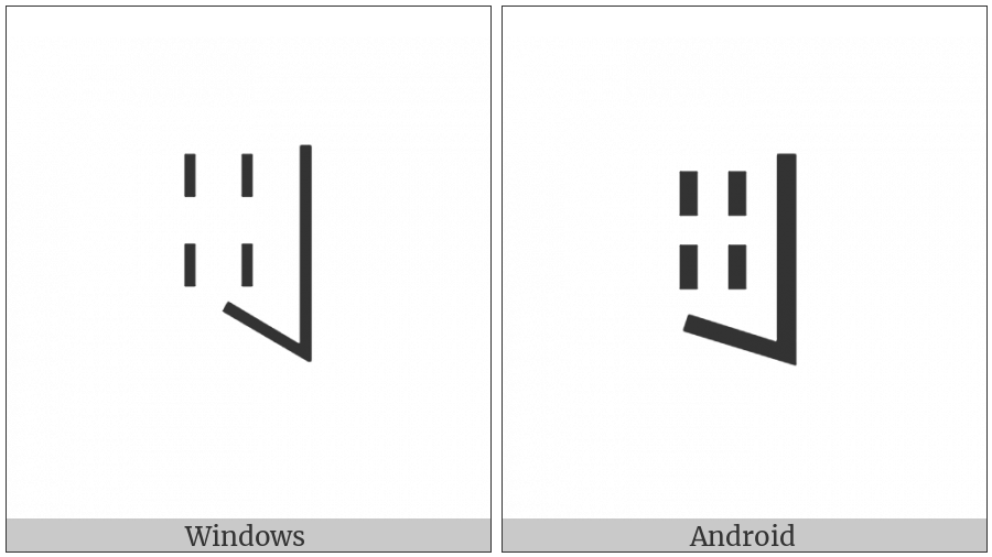 The image below shows how the “Yi Syllable Hmu” symbol might look like on different operating systems. If the font in which this web site is displayed does not contain the symbol and there is no fallback font able to render it, you can use the image below to get an idea of what it should look like.