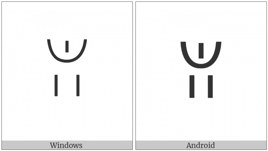 The image below shows how the “Yi Syllable Hmur” symbol might look like on different operating systems. If the font in which this web site is displayed does not contain the symbol and there is no fallback font able to render it, you can use the image below to get an idea of what it should look like.