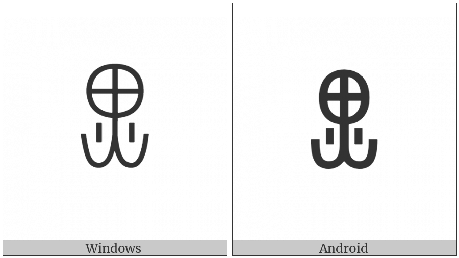 The image below shows how the “Yi Syllable Hmyr” symbol might look like on different operating systems. If the font in which this web site is displayed does not contain the symbol and there is no fallback font able to render it, you can use the image below to get an idea of what it should look like.