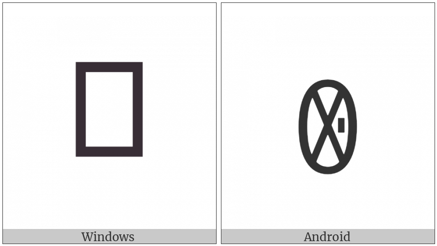 The image below shows how the “Yi Syllable Mie” symbol might look like on different operating systems. If the font in which this web site is displayed does not contain the symbol and there is no fallback font able to render it, you can use the image below to get an idea of what it should look like.