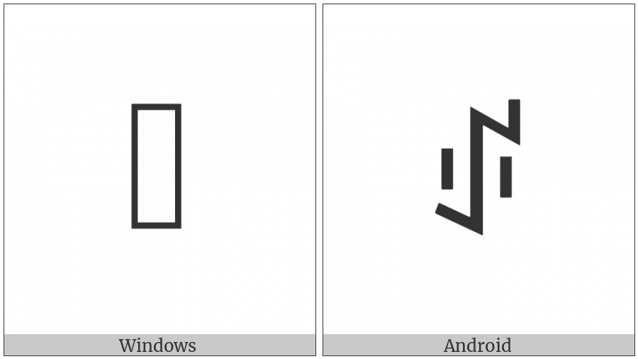 The image below shows how the “Yi Syllable Miep” symbol might look like on different operating systems. If the font in which this web site is displayed does not contain the symbol and there is no fallback font able to render it, you can use the image below to get an idea of what it should look like.