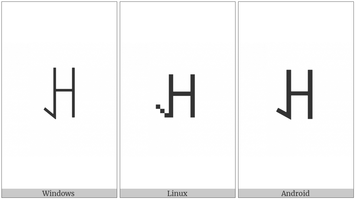 The image below shows how the “Yi Syllable Mu” symbol might look like on different operating systems. If the font in which this web site is displayed does not contain the symbol and there is no fallback font able to render it, you can use the image below to get an idea of what it should look like.