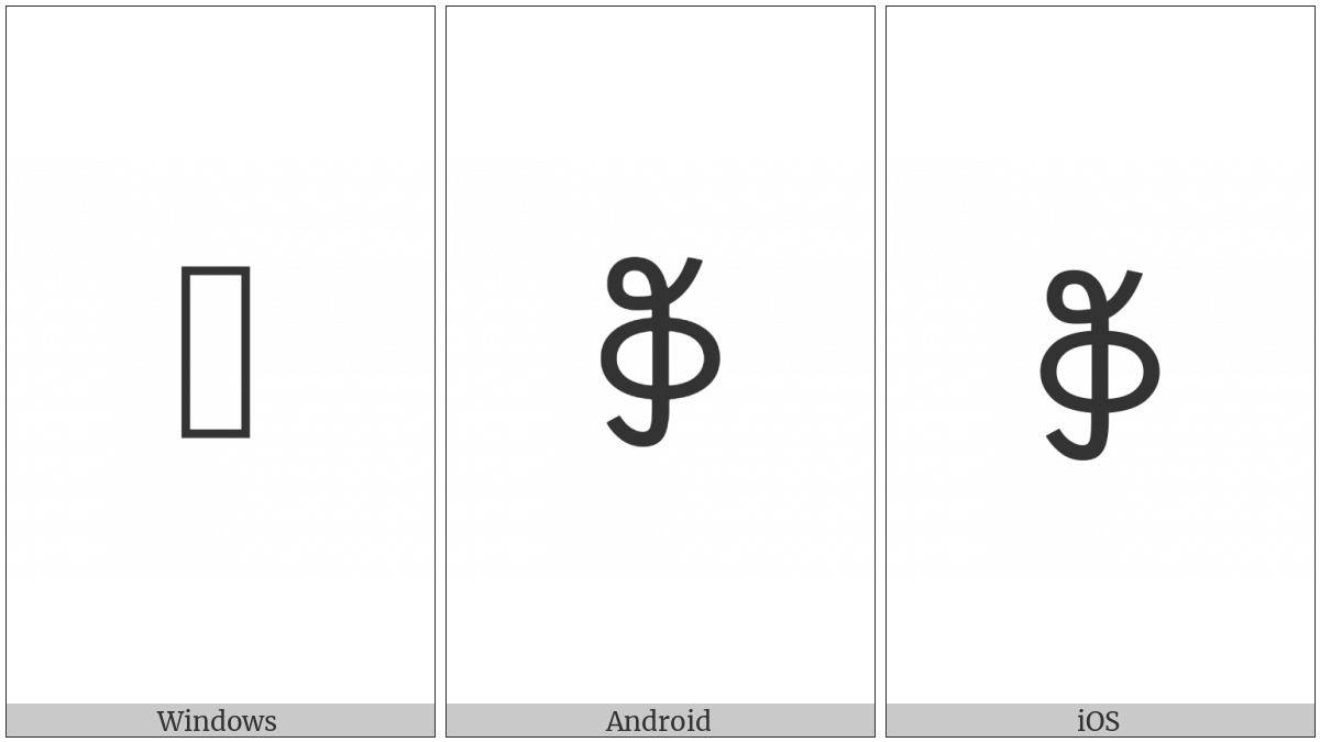 The image below shows how the “Yi Syllable Mup” symbol might look like on different operating systems. If the font in which this web site is displayed does not contain the symbol and there is no fallback font able to render it, you can use the image below to get an idea of what it should look like.