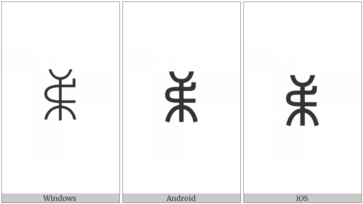 The image below shows how the “Yi Syllable Hli” symbol might look like on different operating systems. If the font in which this web site is displayed does not contain the symbol and there is no fallback font able to render it, you can use the image below to get an idea of what it should look like.