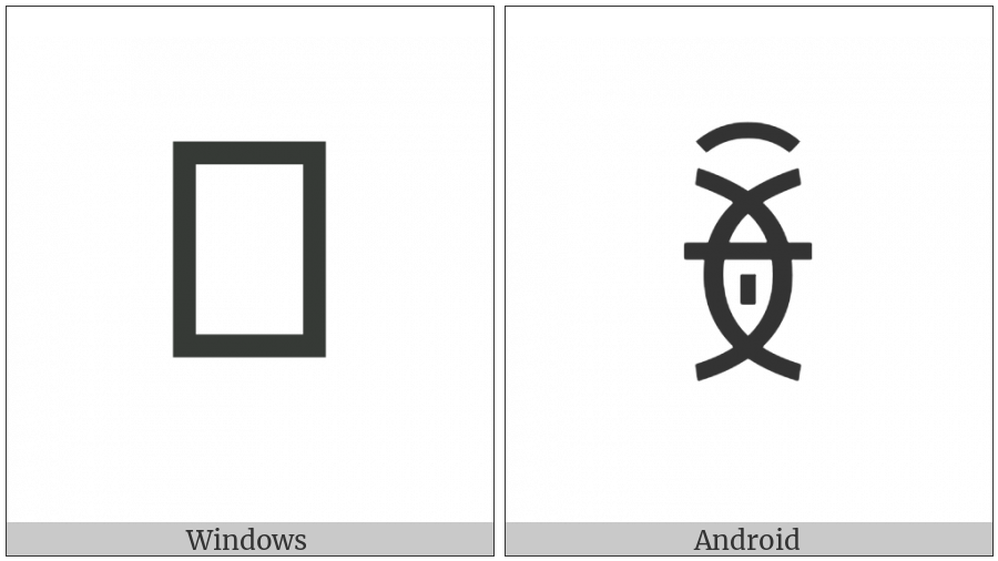 The image below shows how the “Yi Syllable Hluox” symbol might look like on different operating systems. If the font in which this web site is displayed does not contain the symbol and there is no fallback font able to render it, you can use the image below to get an idea of what it should look like.