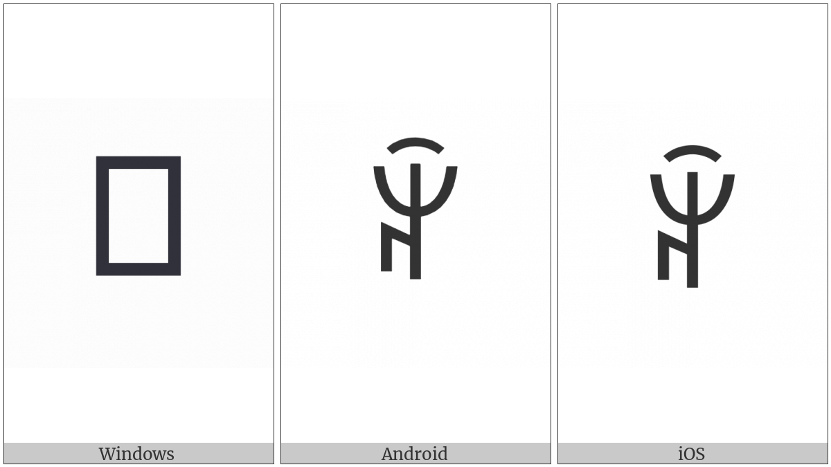 The image below shows how the “Yi Syllable Hlyx” symbol might look like on different operating systems. If the font in which this web site is displayed does not contain the symbol and there is no fallback font able to render it, you can use the image below to get an idea of what it should look like.