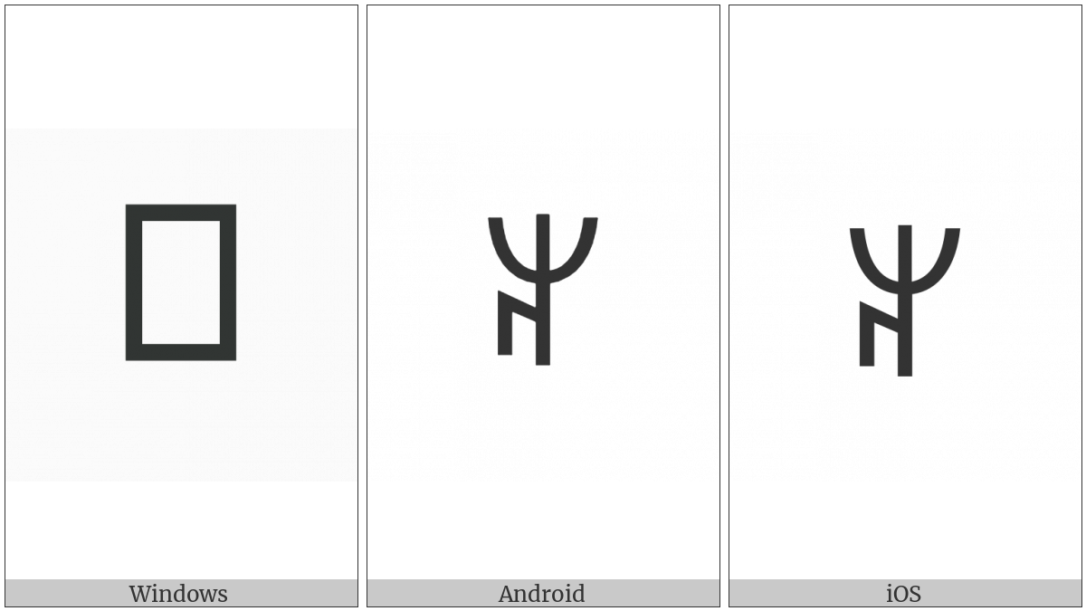 The image below shows how the “Yi Syllable Hly” symbol might look like on different operating systems. If the font in which this web site is displayed does not contain the symbol and there is no fallback font able to render it, you can use the image below to get an idea of what it should look like.