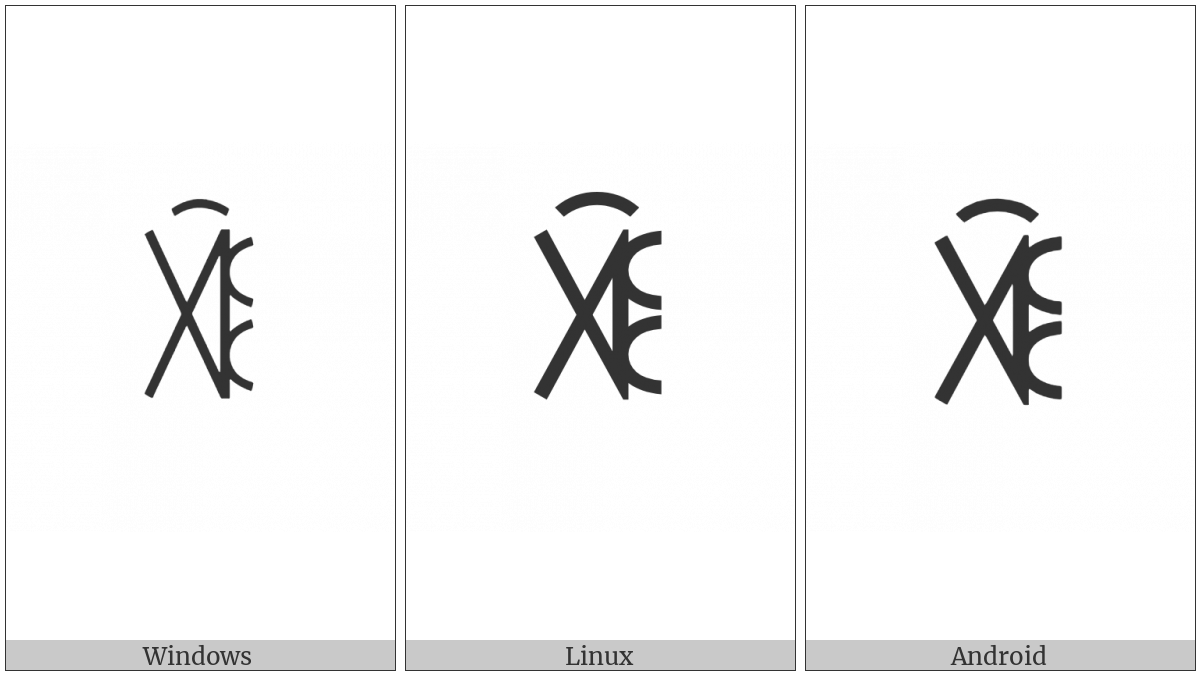 The image below shows how the “Yi Syllable Guox” symbol might look like on different operating systems. If the font in which this web site is displayed does not contain the symbol and there is no fallback font able to render it, you can use the image below to get an idea of what it should look like.