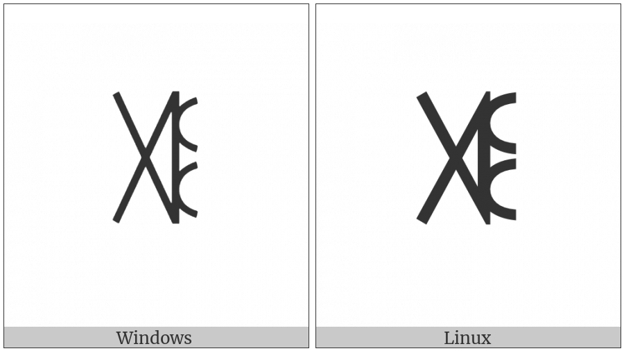 The image below shows how the “Yi Syllable Guo” symbol might look like on different operating systems. If the font in which this web site is displayed does not contain the symbol and there is no fallback font able to render it, you can use the image below to get an idea of what it should look like.