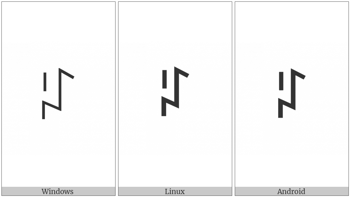 The image below shows how the “Yi Syllable Gep” symbol might look like on different operating systems. If the font in which this web site is displayed does not contain the symbol and there is no fallback font able to render it, you can use the image below to get an idea of what it should look like.