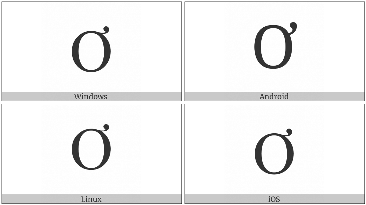 The image below shows how the “Latin Capital Letter O With Horn” symbol might look like on different operating systems. If the font in which this web site is displayed does not contain the symbol and there is no fallback font able to render it, you can use the image below to get an idea of what it should look like.