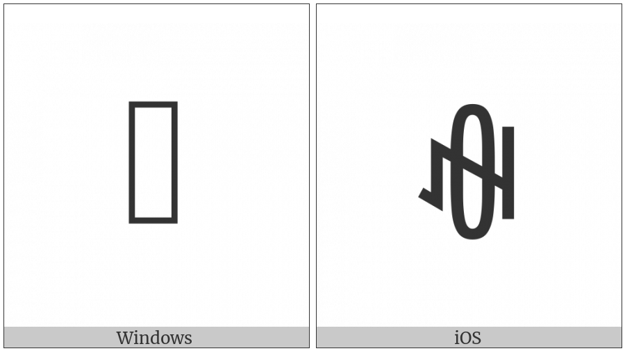 The image below shows how the “Yi Syllable Co” symbol might look like on different operating systems. If the font in which this web site is displayed does not contain the symbol and there is no fallback font able to render it, you can use the image below to get an idea of what it should look like.