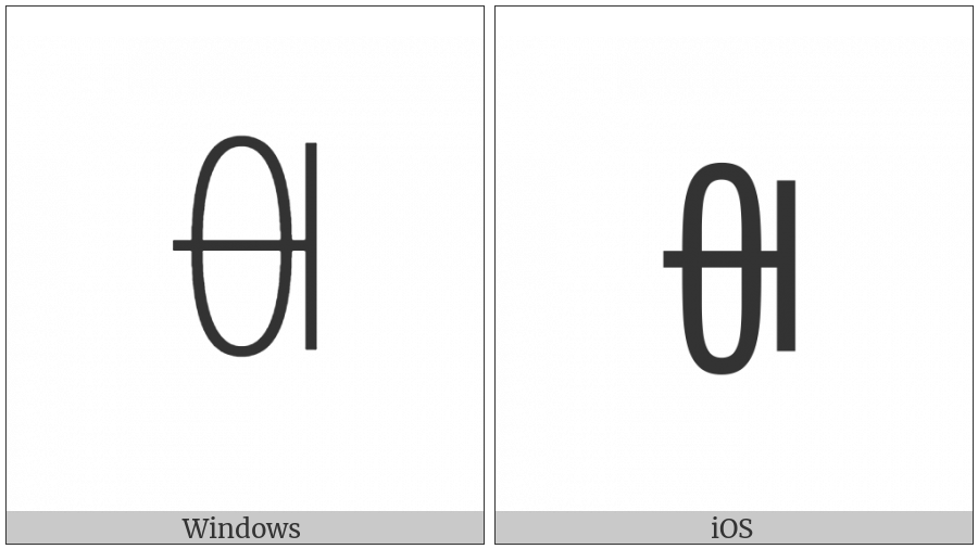 The image below shows how the “Yi Syllable Cop” symbol might look like on different operating systems. If the font in which this web site is displayed does not contain the symbol and there is no fallback font able to render it, you can use the image below to get an idea of what it should look like.