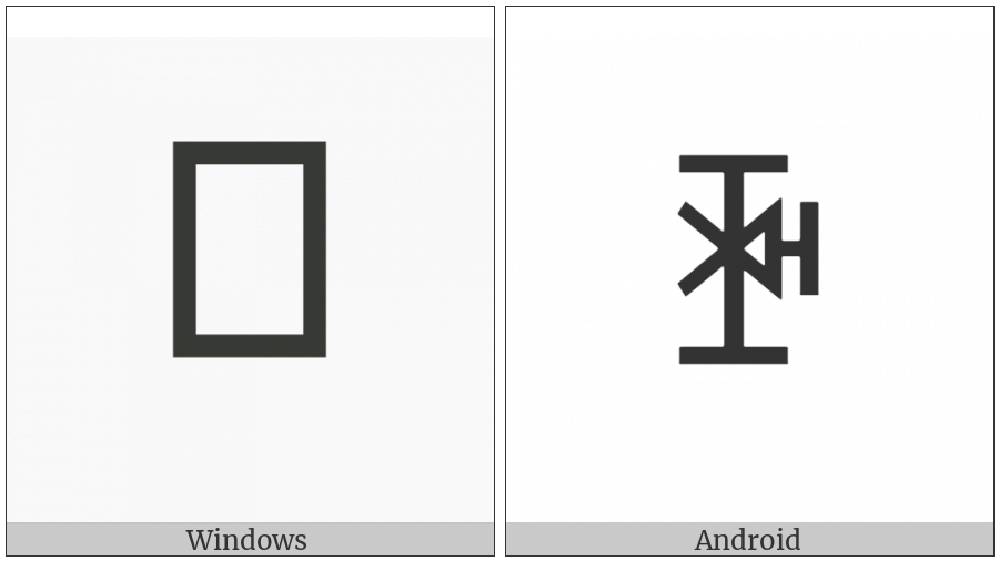 The image below shows how the “Yi Syllable Zzat” symbol might look like on different operating systems. If the font in which this web site is displayed does not contain the symbol and there is no fallback font able to render it, you can use the image below to get an idea of what it should look like.