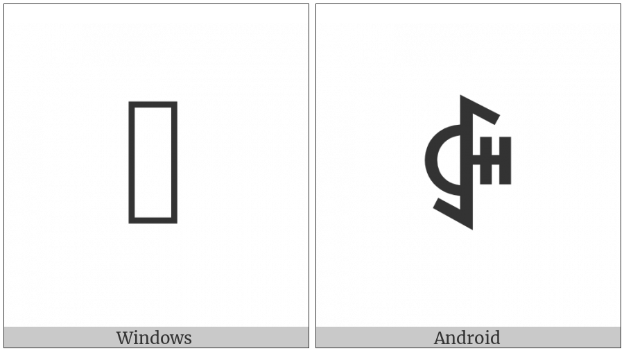 The image below shows how the “Yi Syllable Zzup” symbol might look like on different operating systems. If the font in which this web site is displayed does not contain the symbol and there is no fallback font able to render it, you can use the image below to get an idea of what it should look like.