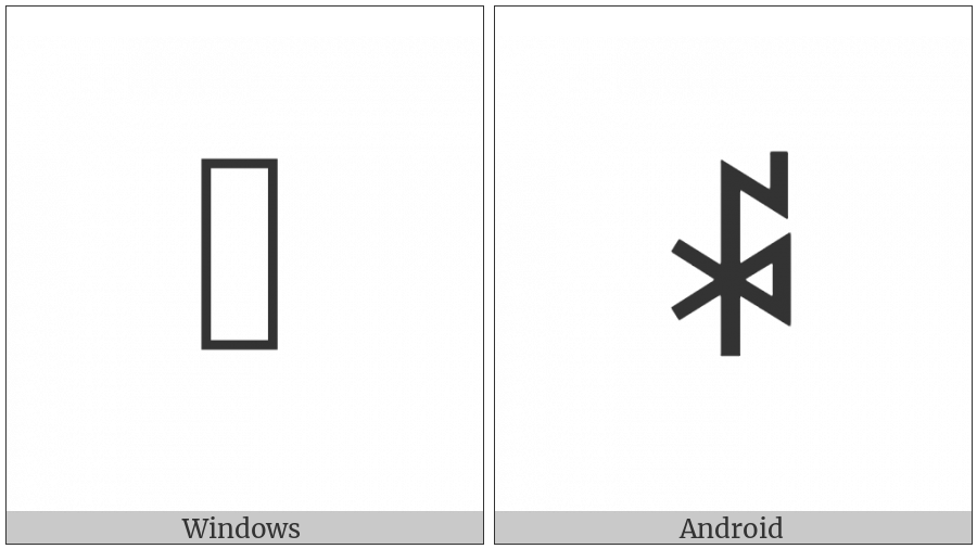 The image below shows how the “Yi Syllable Zzy” symbol might look like on different operating systems. If the font in which this web site is displayed does not contain the symbol and there is no fallback font able to render it, you can use the image below to get an idea of what it should look like.