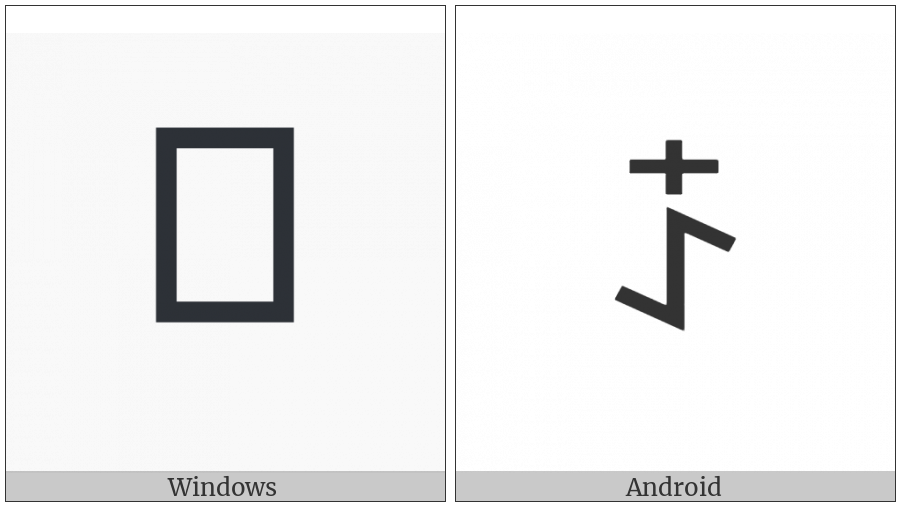 The image below shows how the “Yi Syllable Nzat” symbol might look like on different operating systems. If the font in which this web site is displayed does not contain the symbol and there is no fallback font able to render it, you can use the image below to get an idea of what it should look like.
