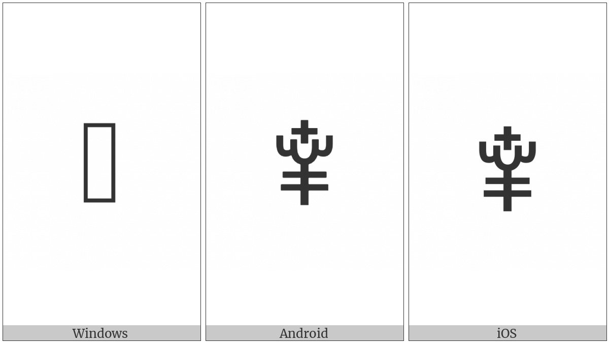 The image below shows how the “Yi Syllable Nzup” symbol might look like on different operating systems. If the font in which this web site is displayed does not contain the symbol and there is no fallback font able to render it, you can use the image below to get an idea of what it should look like.