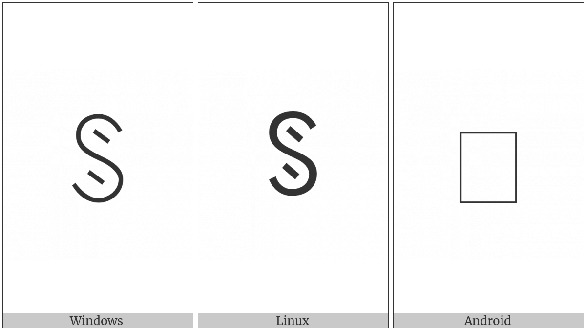 The image below shows how the “Yi Syllable Sot” symbol might look like on different operating systems. If the font in which this web site is displayed does not contain the symbol and there is no fallback font able to render it, you can use the image below to get an idea of what it should look like.