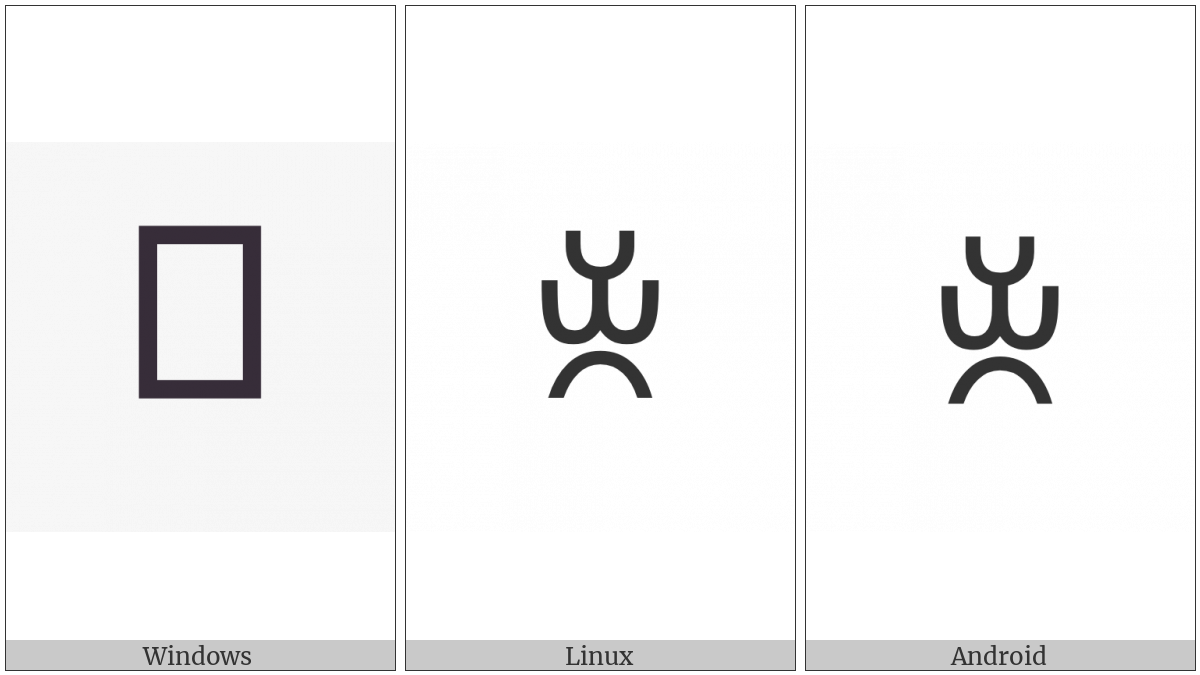 The image below shows how the “Yi Syllable Sut” symbol might look like on different operating systems. If the font in which this web site is displayed does not contain the symbol and there is no fallback font able to render it, you can use the image below to get an idea of what it should look like.
