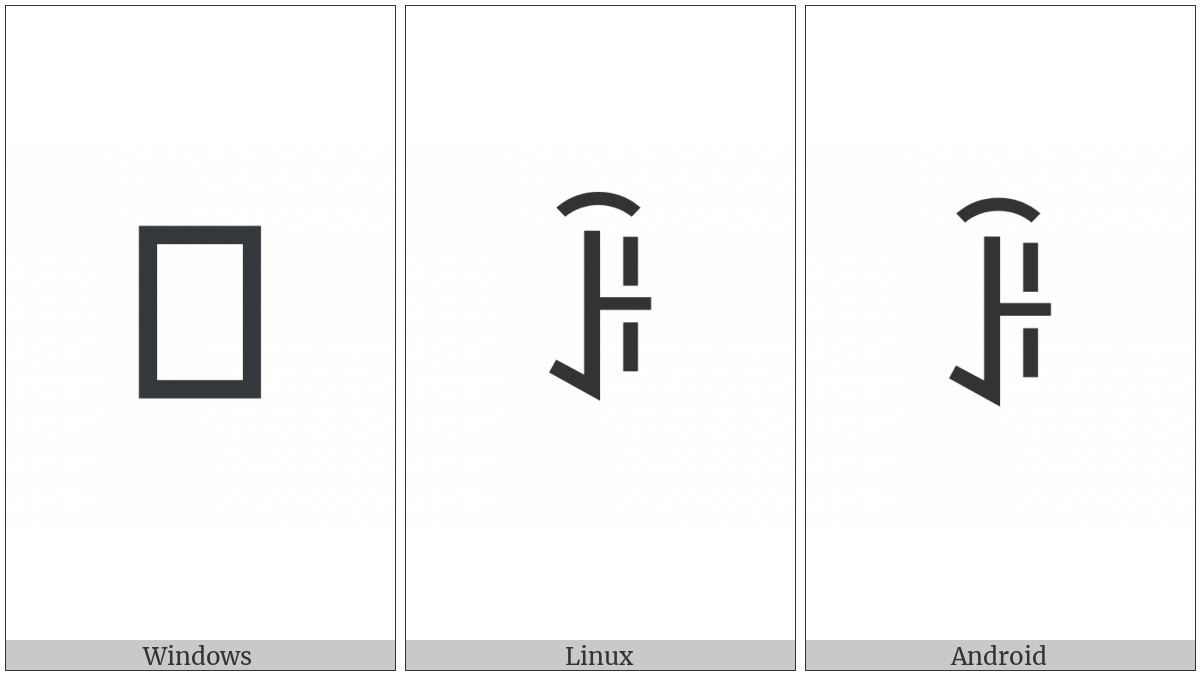 The image below shows how the “Yi Syllable Sux” symbol might look like on different operating systems. If the font in which this web site is displayed does not contain the symbol and there is no fallback font able to render it, you can use the image below to get an idea of what it should look like.