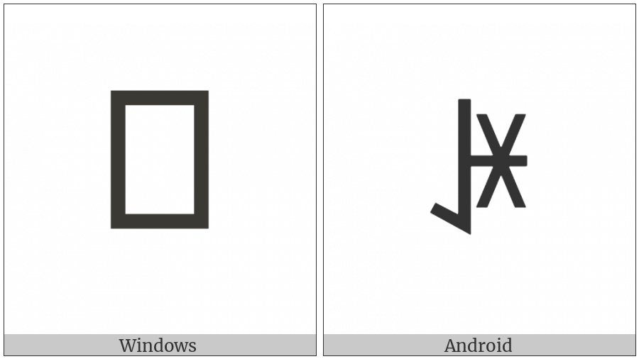 The image below shows how the “Yi Syllable Qie” symbol might look like on different operating systems. If the font in which this web site is displayed does not contain the symbol and there is no fallback font able to render it, you can use the image below to get an idea of what it should look like.