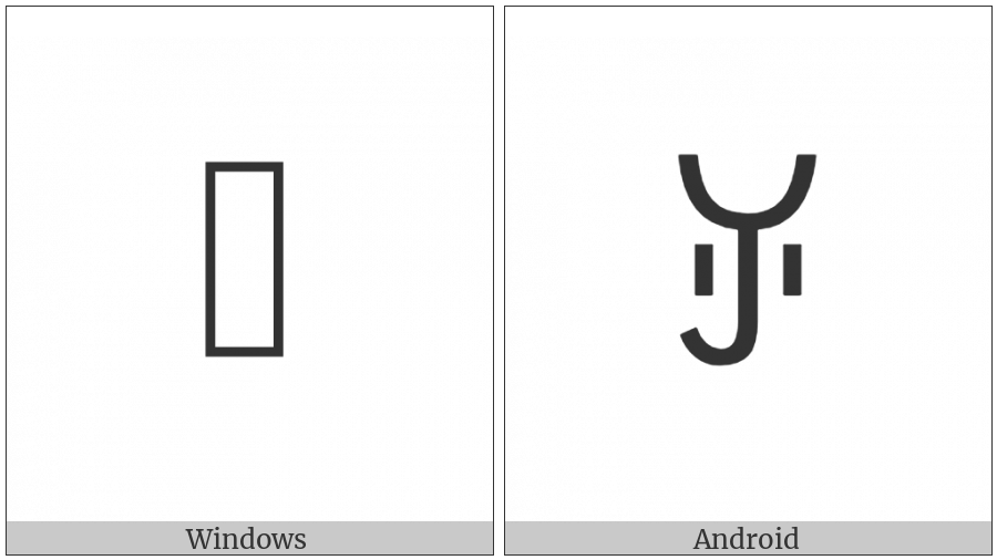 The image below shows how the “Yi Syllable Jjiet” symbol might look like on different operating systems. If the font in which this web site is displayed does not contain the symbol and there is no fallback font able to render it, you can use the image below to get an idea of what it should look like.