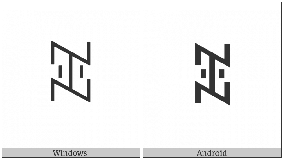 The image below shows how the “Yi Syllable Jjyt” symbol might look like on different operating systems. If the font in which this web site is displayed does not contain the symbol and there is no fallback font able to render it, you can use the image below to get an idea of what it should look like.