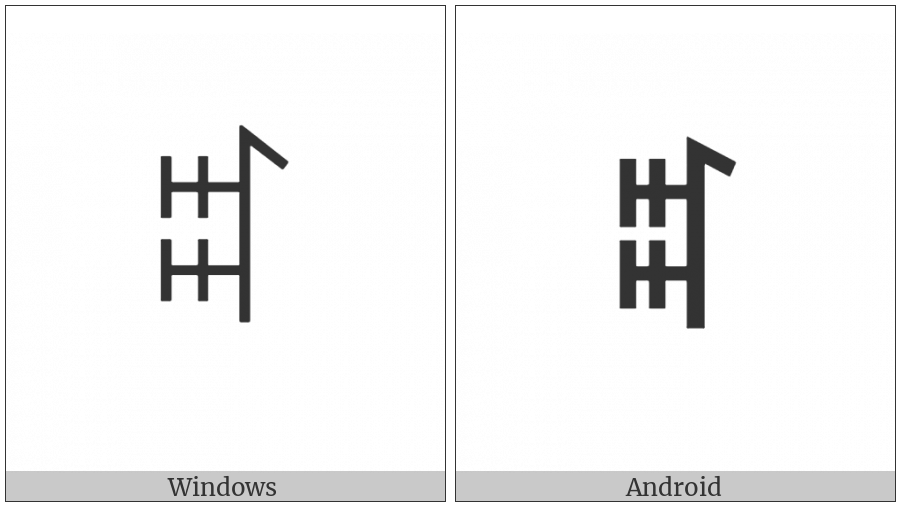 The image below shows how the “Yi Syllable Jjyp” symbol might look like on different operating systems. If the font in which this web site is displayed does not contain the symbol and there is no fallback font able to render it, you can use the image below to get an idea of what it should look like.