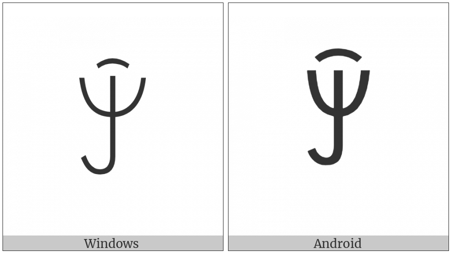The image below shows how the “Yi Syllable Njix” symbol might look like on different operating systems. If the font in which this web site is displayed does not contain the symbol and there is no fallback font able to render it, you can use the image below to get an idea of what it should look like.