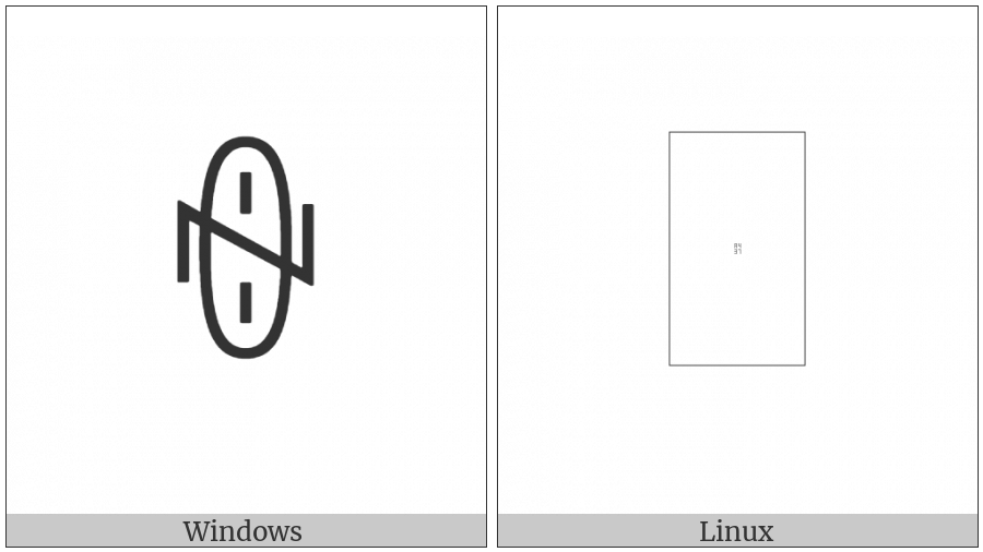 The image below shows how the “Yi Syllable Njie” symbol might look like on different operating systems. If the font in which this web site is displayed does not contain the symbol and there is no fallback font able to render it, you can use the image below to get an idea of what it should look like.