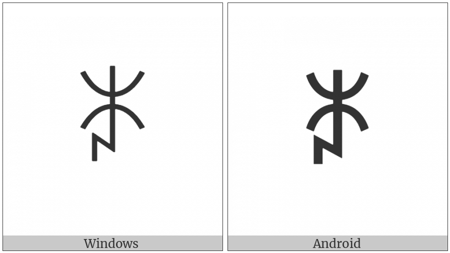 The image below shows how the “Yi Syllable Nyit” symbol might look like on different operating systems. If the font in which this web site is displayed does not contain the symbol and there is no fallback font able to render it, you can use the image below to get an idea of what it should look like.