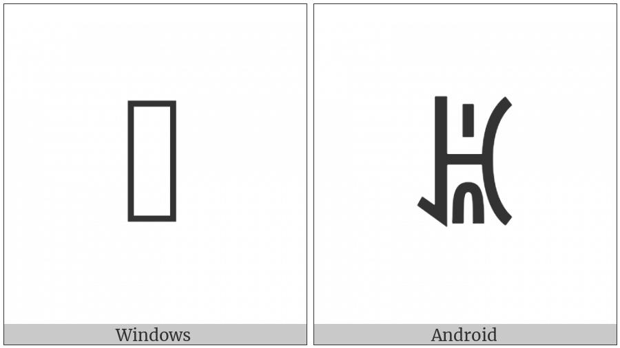 The image below shows how the “Yi Syllable Nyie” symbol might look like on different operating systems. If the font in which this web site is displayed does not contain the symbol and there is no fallback font able to render it, you can use the image below to get an idea of what it should look like.