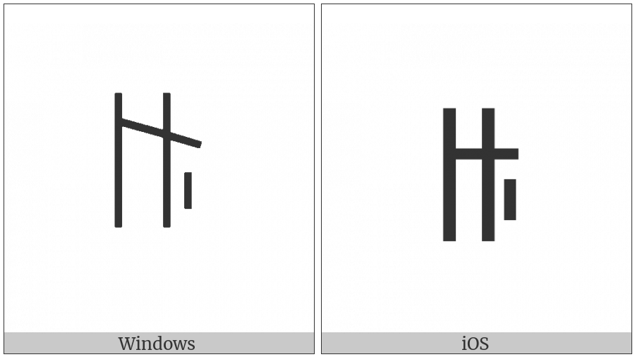 The image below shows how the “Yi Syllable Nyu” symbol might look like on different operating systems. If the font in which this web site is displayed does not contain the symbol and there is no fallback font able to render it, you can use the image below to get an idea of what it should look like.