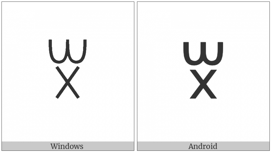 The image below shows how the “Yi Syllable Xit” symbol might look like on different operating systems. If the font in which this web site is displayed does not contain the symbol and there is no fallback font able to render it, you can use the image below to get an idea of what it should look like.