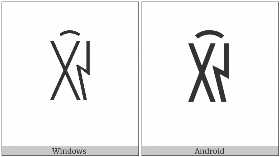 The image below shows how the “Yi Syllable Xix” symbol might look like on different operating systems. If the font in which this web site is displayed does not contain the symbol and there is no fallback font able to render it, you can use the image below to get an idea of what it should look like.