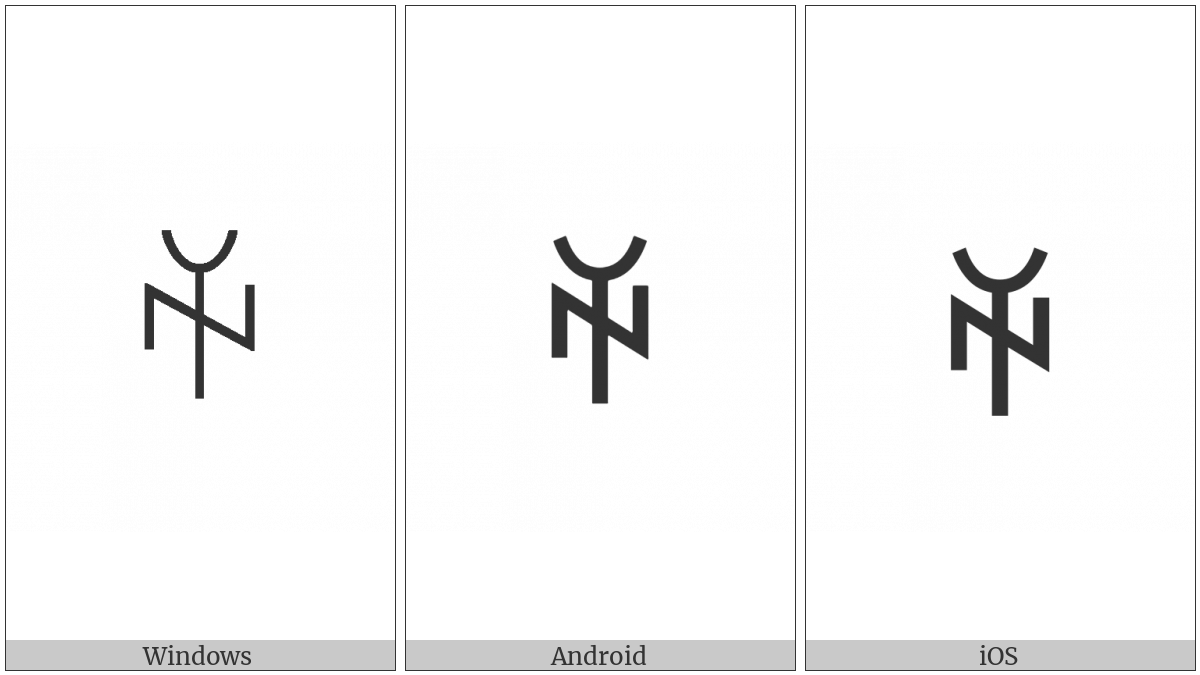 The image below shows how the “Yi Syllable Xyp” symbol might look like on different operating systems. If the font in which this web site is displayed does not contain the symbol and there is no fallback font able to render it, you can use the image below to get an idea of what it should look like.