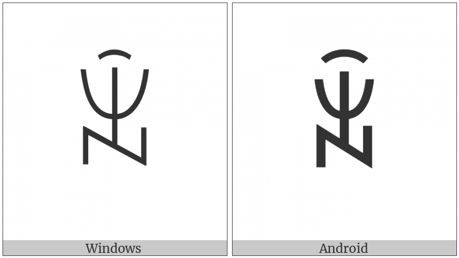 The image below shows how the “Yi Syllable Xyrx” symbol might look like on different operating systems. If the font in which this web site is displayed does not contain the symbol and there is no fallback font able to render it, you can use the image below to get an idea of what it should look like.