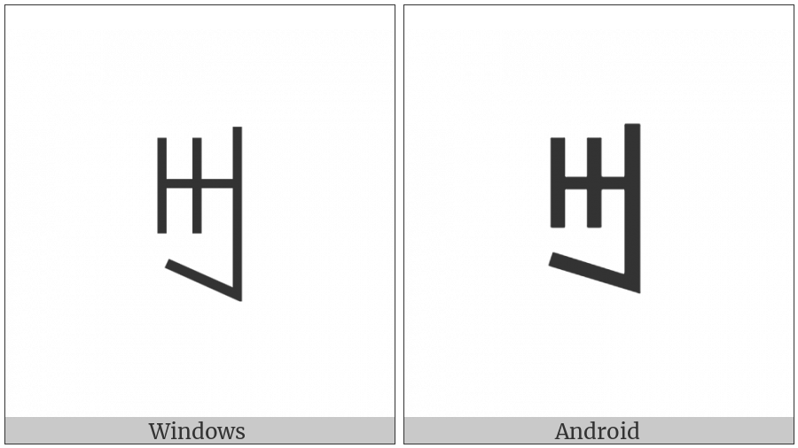 The image below shows how the “Yi Syllable Yup” symbol might look like on different operating systems. If the font in which this web site is displayed does not contain the symbol and there is no fallback font able to render it, you can use the image below to get an idea of what it should look like.