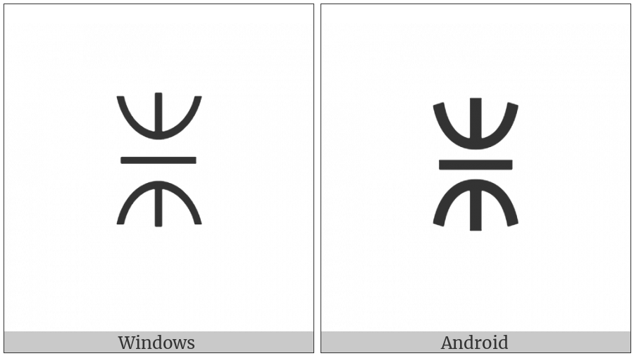 The image below shows how the “Yi Syllable Yyt” symbol might look like on different operating systems. If the font in which this web site is displayed does not contain the symbol and there is no fallback font able to render it, you can use the image below to get an idea of what it should look like.