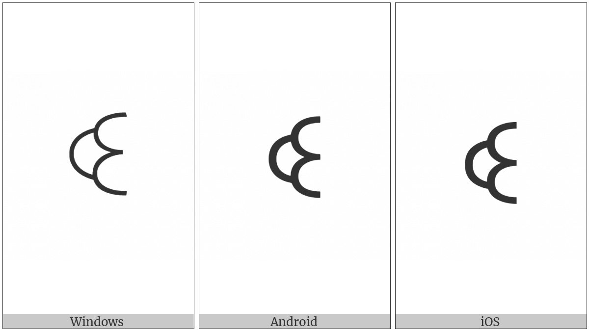 The image below shows how the “Yi Syllable Yyp” symbol might look like on different operating systems. If the font in which this web site is displayed does not contain the symbol and there is no fallback font able to render it, you can use the image below to get an idea of what it should look like.