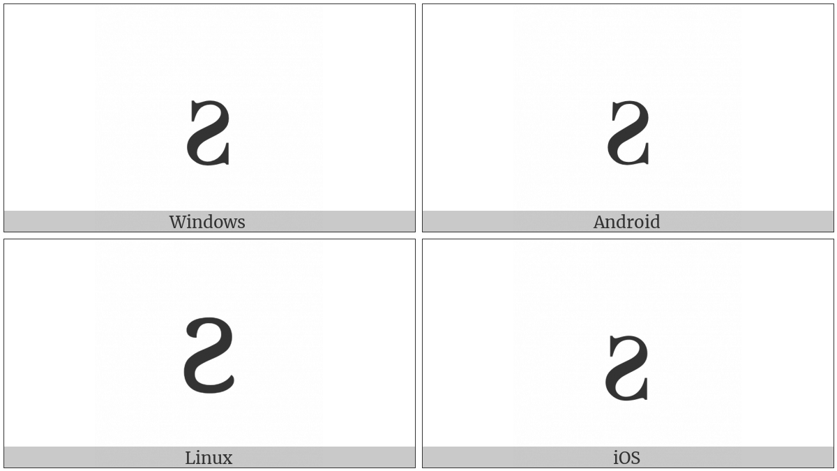 The image below shows how the “Latin Small Letter Tone Two” symbol might look like on different operating systems. If the font in which this web site is displayed does not contain the symbol and there is no fallback font able to render it, you can use the image below to get an idea of what it should look like.