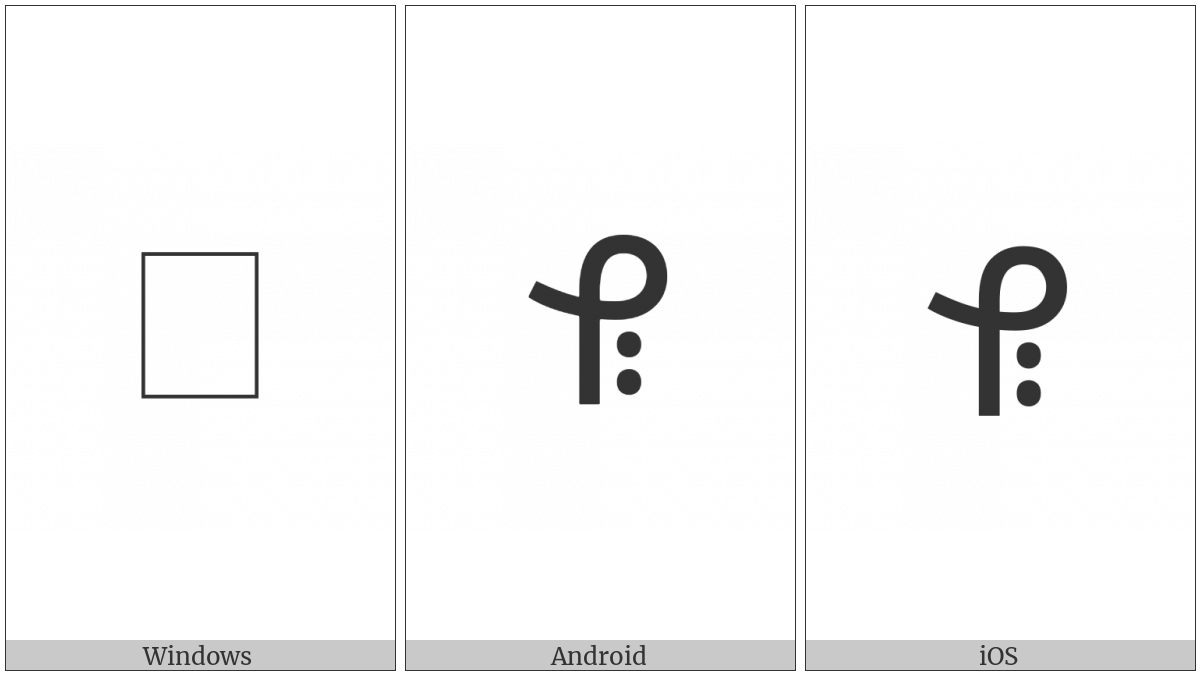 The image below shows how the “Bamum Letter La” symbol might look like on different operating systems. If the font in which this web site is displayed does not contain the symbol and there is no fallback font able to render it, you can use the image below to get an idea of what it should look like.